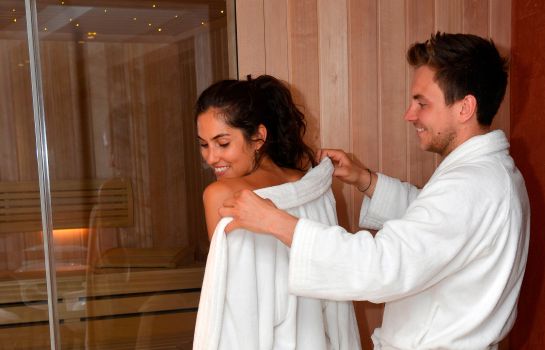 Es steht ein großzügiger Fitnessraum mit modernen Life Fitness-Geräten und einem Wellness-Bereich mit finnischer Sauna, Bio-Sauna und einem geräumigen Ruhebereich bereit.